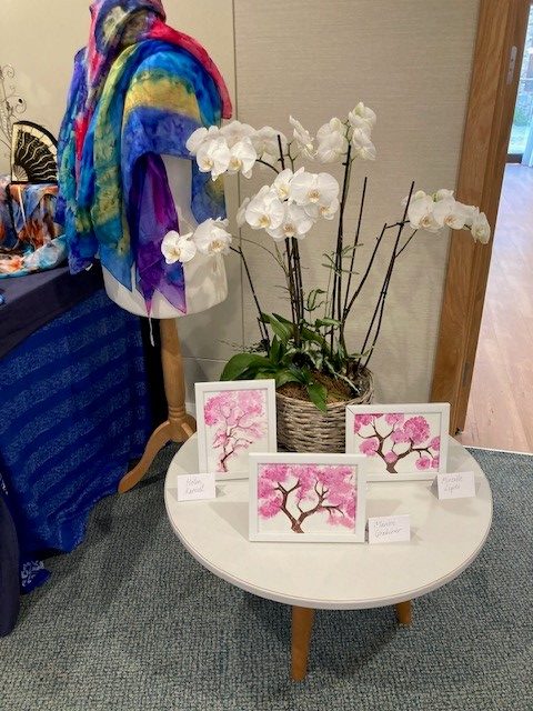 The Pears Communal Hall was transformed into a gallery filled with amazing works created during our engaging activities like art studio, sensory art, silk painting, knit and natter, poetry writing and intergenerational projects.