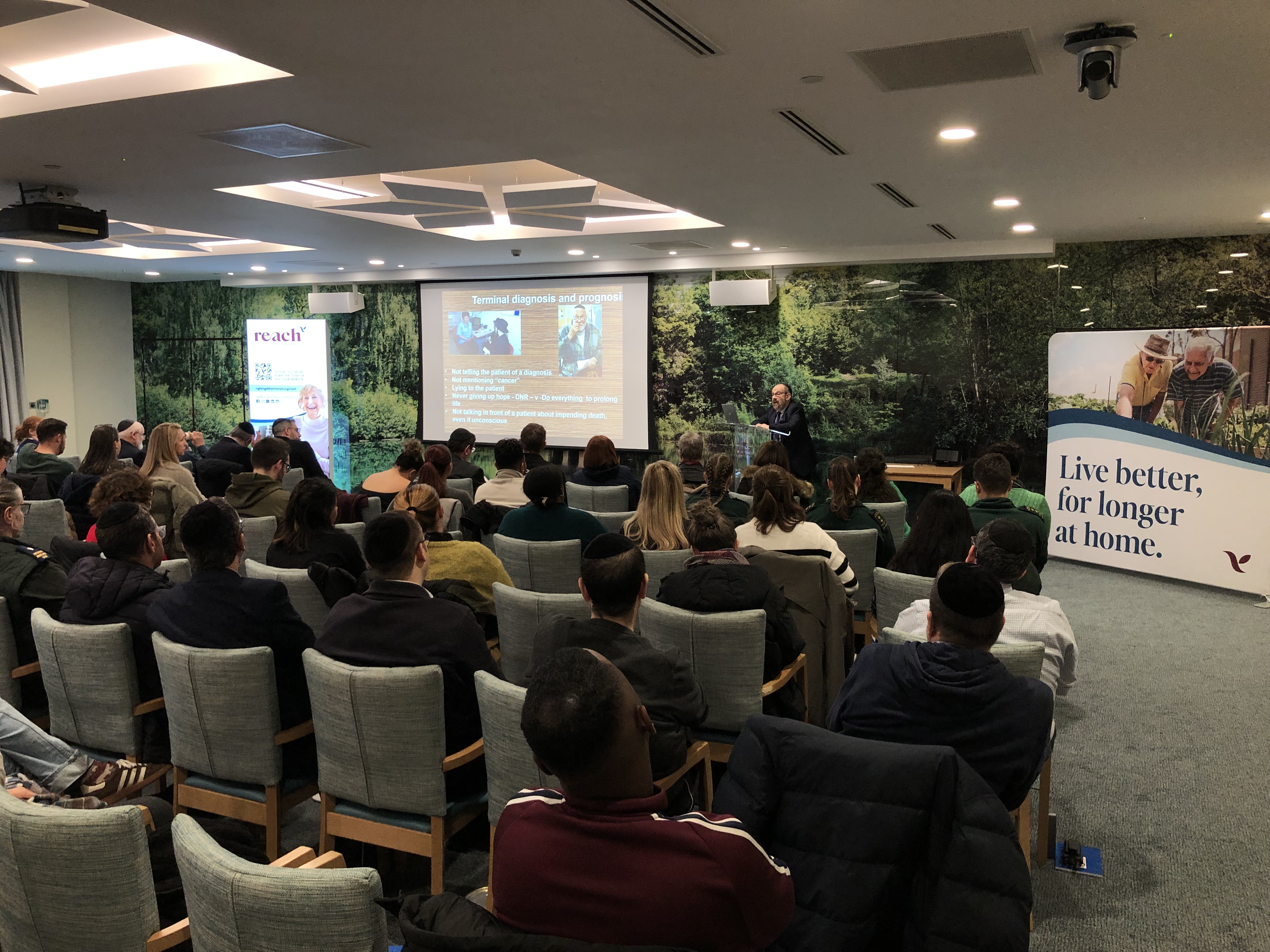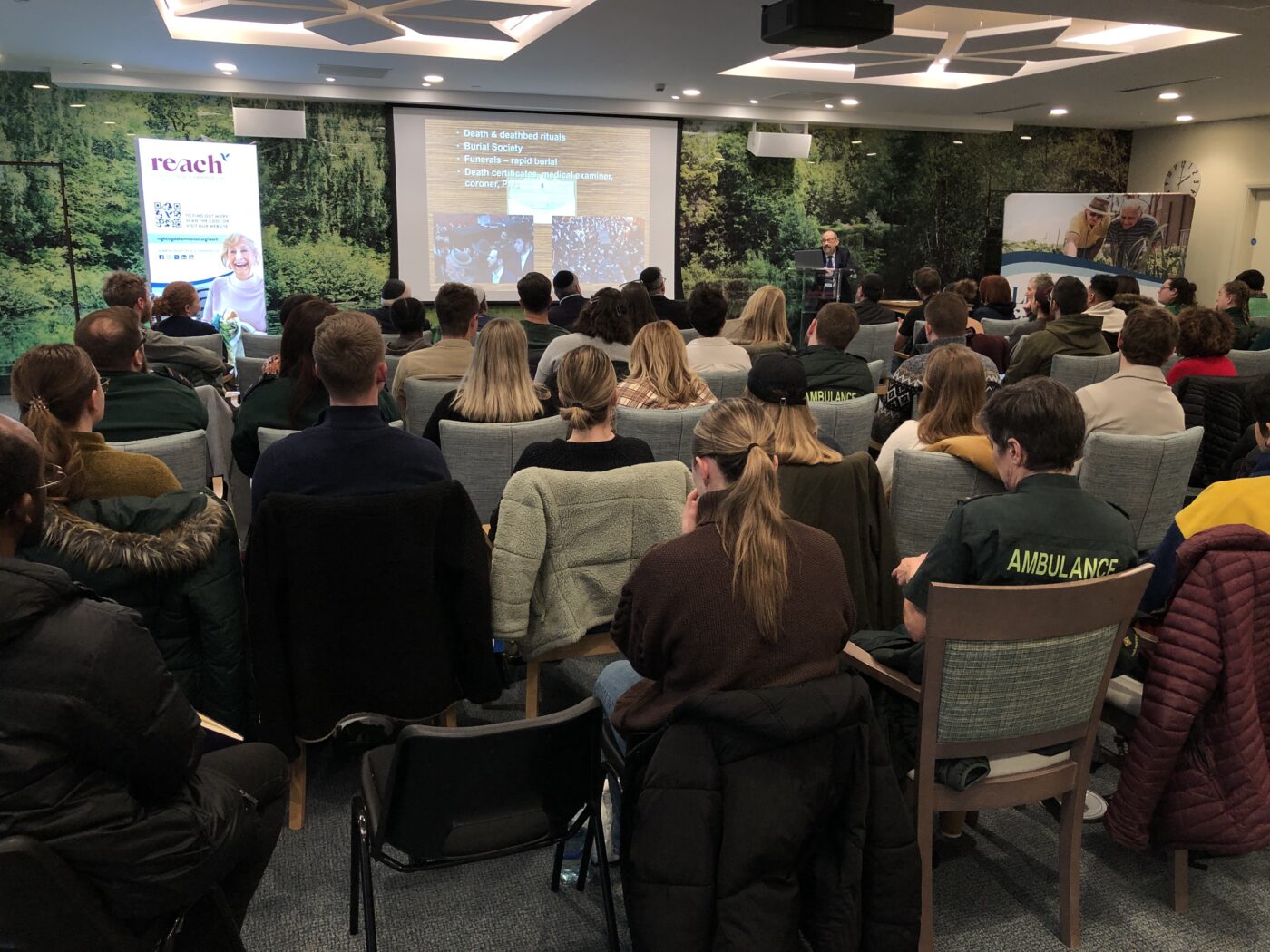 The London Ambulance Service (LAS) hosted a Seminar at Hammerson House, Wohl Campus on the 22nd January on the topic of ‘Supporting Jewish and Muslim Patients During Death and Dying’. The seminar, directed towards clinicians of all grades working within the LAS, included organisers Dr Lyann Gross (Assistant Medical Director at LAS as well as GP at Hammerson House, Wohl Campus), Amy Walton (Trainee Specialist Paramedic) and speakers Dr Yossi Spitzer (GP and author of ‘A Guide to the orthodox Way of Life for Health Care Professionals’), representatives from Misaskim, Dr Jo Ish-Horowicz (Lead Medical Examiner for Barnet), Sidney Sinitsky (Jewish Burial Society) and Mohamed Omer (Co-Founder of Gardens of Peace).