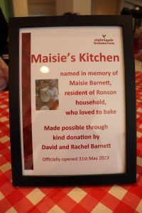 A delicious, Italian themed lunch was celebrated in Ronson Household to mark the official opening of Maisie’s Kitchen. Maisie Barnett was a Resident at Nightingale House for 16 months and she loved to bake. Her son David and daughter-in-law Rachel donated the kitchen in her memory.